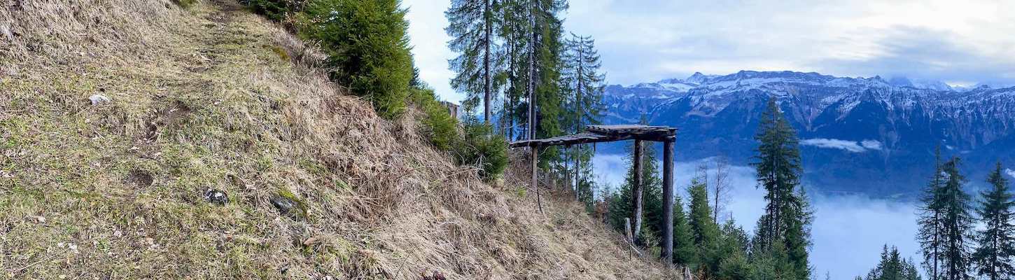 Anreise | Mit öV Zug bis Ringgenberg (Fahrplan). Den Bahnhof nordwärts verlassen und nach links loslaufen. Der Weg führt zunächst den Bahngeleisen entlang über eine kleine Anhöhe und biegt dann zur Hauptstrasse nach rechts ab. Bei der Hauptstrasse angelangt, links an der Bushaltestelle Post vorbeilaufen, dann nach ca. 100m rechts hoch durch das Uhrmachergässli und dann das Gartenwegli hoch, alles geradeaus bis an den Waldrand Mit Auto Ich empfehle ausdrücklich, mit den öffentlichen Verkehrsmittel anzureisen, da mit Interlaken die Route an einem anderen Ort endet. Wenige Parkplätze bei der zb Zentralbahn, P+Rail Ringgenberg vorhanden, Adresse: Bahnhofplatz, 3852 Ringgenberg | für Navi/GPS: 46.703988428853236, 7.899909596554383 |
