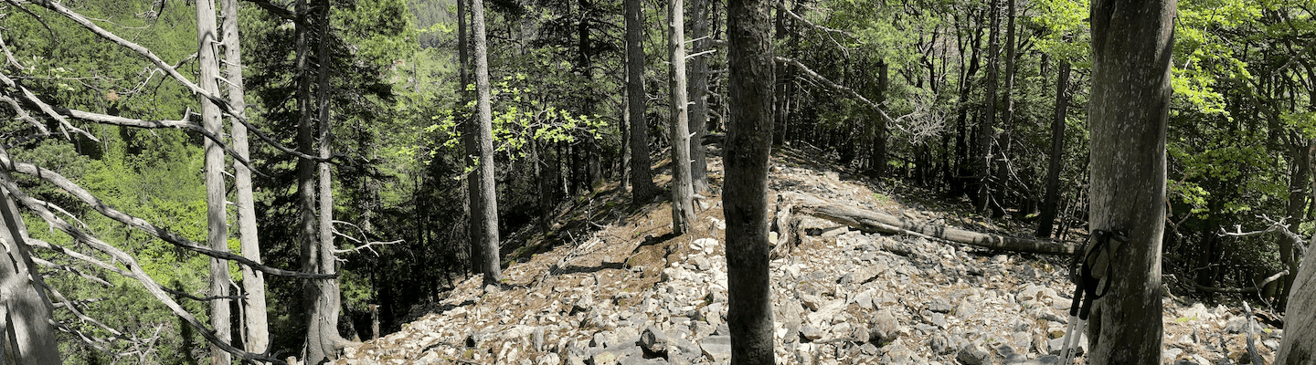 Tipp: Der Grat (letzter Teil) kann rechts umgangen werden (Pfad der Felswand entlang)