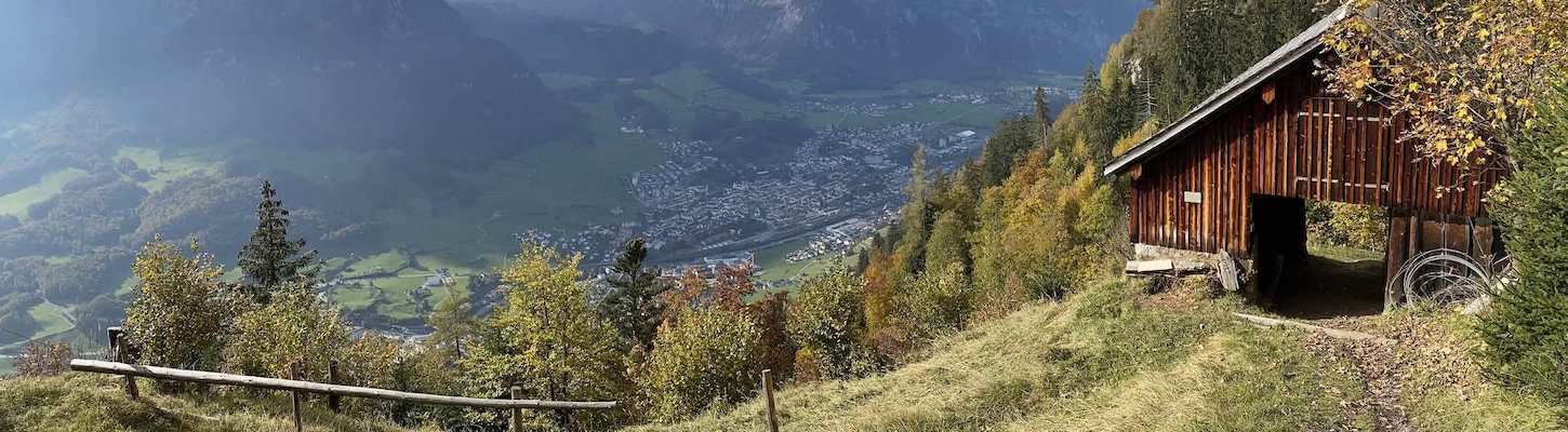 Zug bis Ennenda (Fahrplan), dort den Bahnhof ostwärts verlassen, wo auch schon die Wanderroute startet.